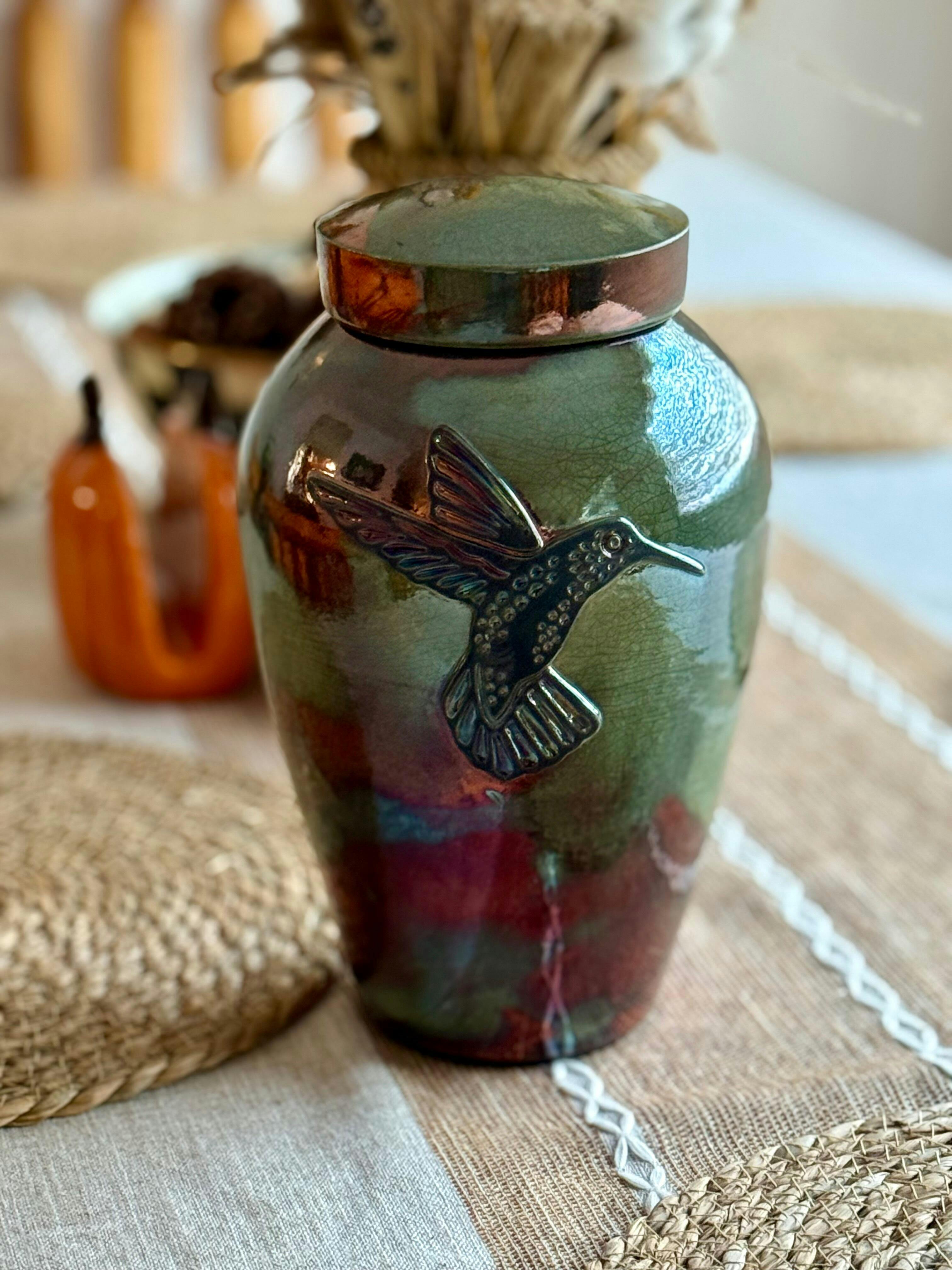Handcrafted Hummingbird Raku Ceramic Cremation Urn