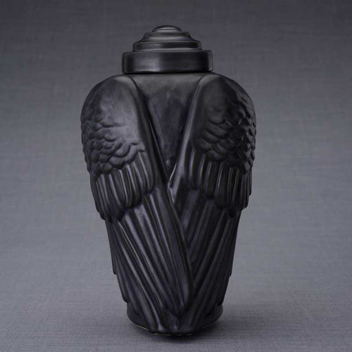 Angel Wings Sculpture Ceramic Cremation Urn in Black