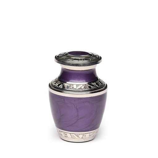 The Purple Pewter Urn with Jasmine Leaf Art is an enchanting memorial piece with a captivating shade of purple. Meticulously crafted from premium p...