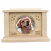 This is a beautifully handcrafted, high-quality memorial made with families in mind. This urn features a centered photo-framed circle cutout to place a photo of your beloved pet companion. Crafted from durable hardwood and finished with a clear coat that enhances its warm, natural grain, this urn offers an elegant and lasting tribute to your beloved pet. It also features integrated felt feet to ensure stability and protect your display surfaces from scratches.
